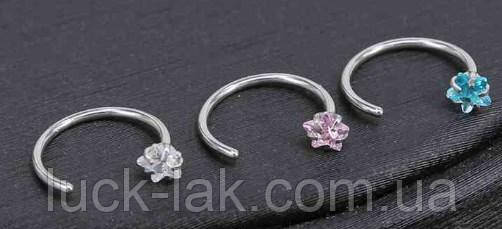 Кільце, сережок пірсинг для носа з кристалом рожева зоря 3 мм