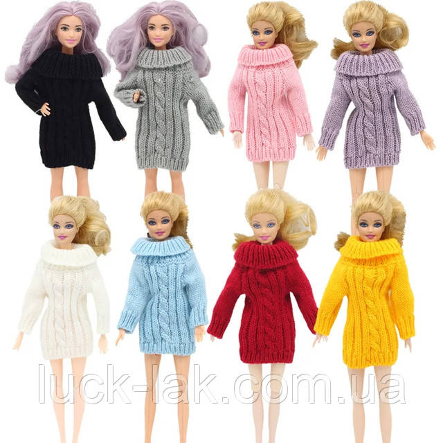 Cвітер подовжений, в'язаний, оверсайз, туніка для ляльки Барбі, шарнірної ляльки 1/6, Блайз, Пуліп. Колір на вибір.