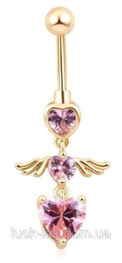 Сережок пірсинг у пупок сердечка з кристалами