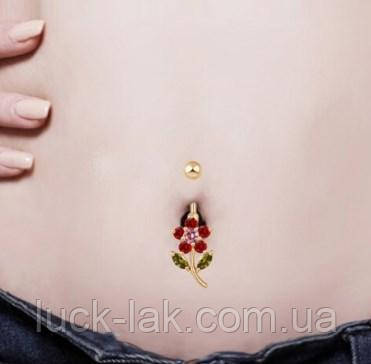 Сережки пірсинг у пупок квітка з білими кристалами
