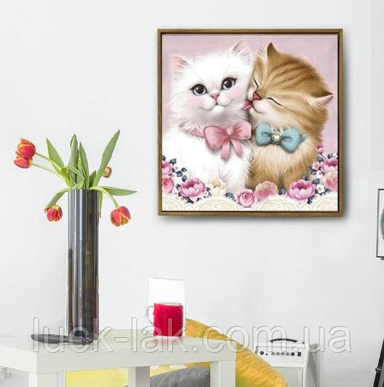 Алмазна вишивка, розмір полотна 30х30 см, розмір малюнка 24х24 см, милі котики