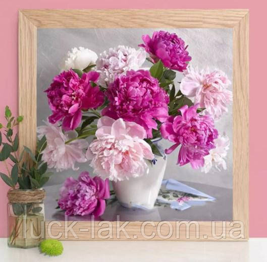 Алмазна вишивка повітряні півонії 30х30 см, квадратні стрази, повна викладка