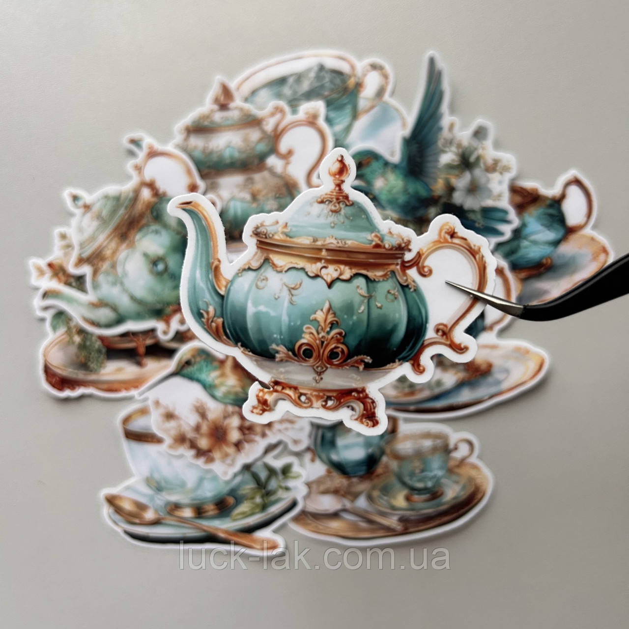 Міні-набори стікерів "Чайний сервіз у бірюзовий відтінок"