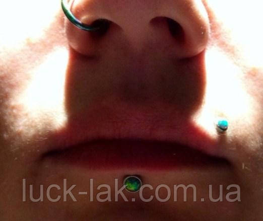 Лабрет, пірсинг з опалом, медсплав штанга 6 або 8 мм на вибір