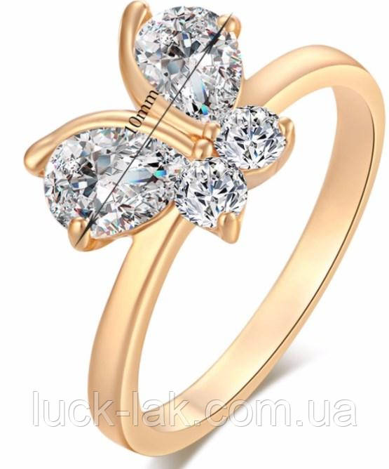 Кільце метелик із кристалами, колір-золото