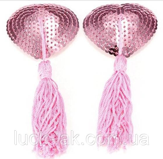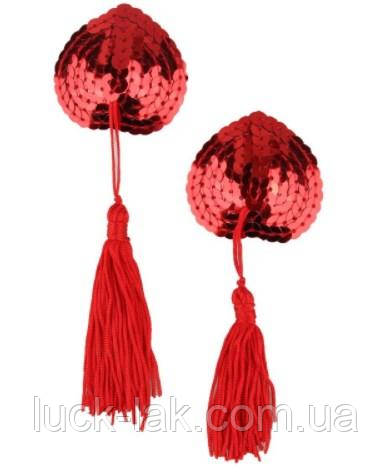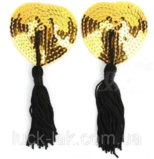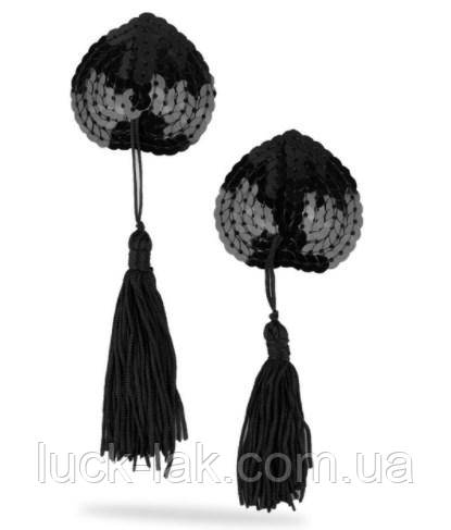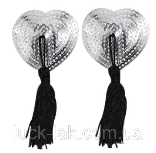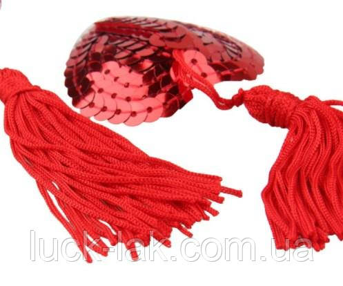 Спокусливий аксесуар - наклейки на груди, серця, які принесуть чуттєве задоволення вам і вашому партнеру. Сердечка розшиті паєтками та прикрашені пензликами, які кочуться в такт рухів, що особливо ефектно виглядає в танці. Приклеюються сердечка завдяки липкості силікону, який може використовуватися багаторазово. На шкірі не залишає жодних липких слідів. Просто кріпити і знімати.
