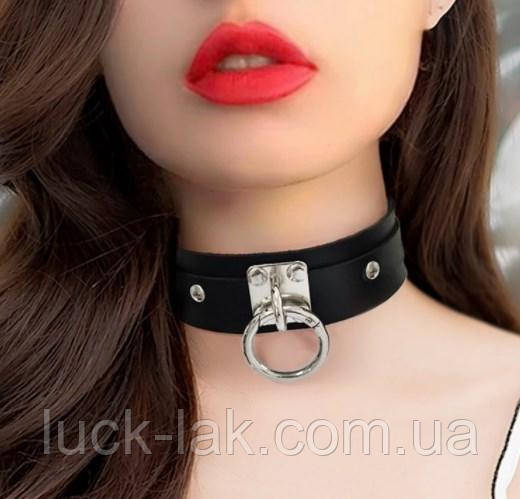 Чокер (готика, панк, рок) з підвіскою кільце, чорний.