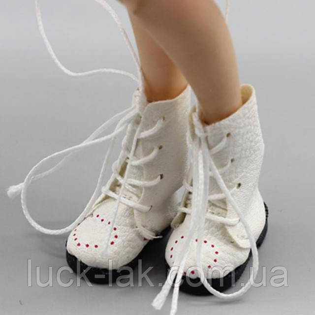 Такі чобітки не тільки завершать образ, а й додадуть стійкості. Матеріал — PU-шкіра, шнурівка мотузковими шнурками як справжнє взуття. Розмір дає змогу одягнути на ніжку Блайз або Барбі з носком або колготками.