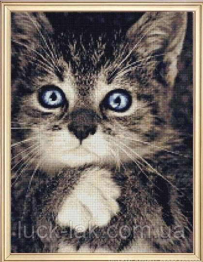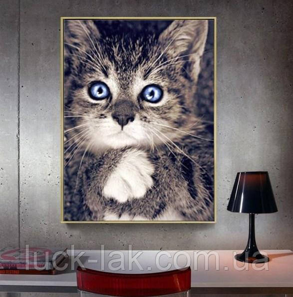 Алмазна вишивка, розмір 20х25 см блакитноокий котик